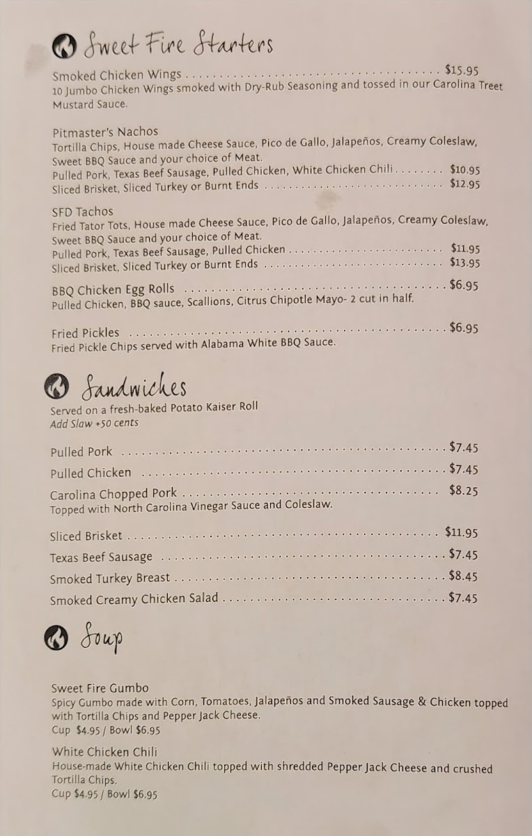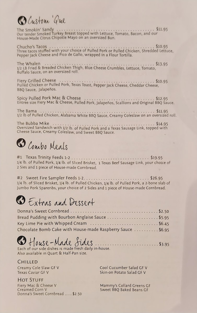 Despite some dry brisket notes, the hearty portions, welcoming atmosphere, and consistent quality make Sweet Fire Donna's a must-visit for barbecue lovers seeking bold, comforting flavors with Southern soul.